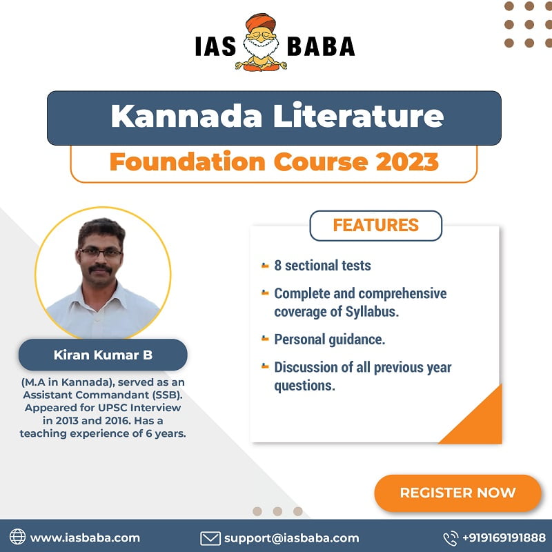 Fine-tune your UPSC preparation with IAS Baba’s Foundation Course of Kannada Literature starting on 18th July 2022.